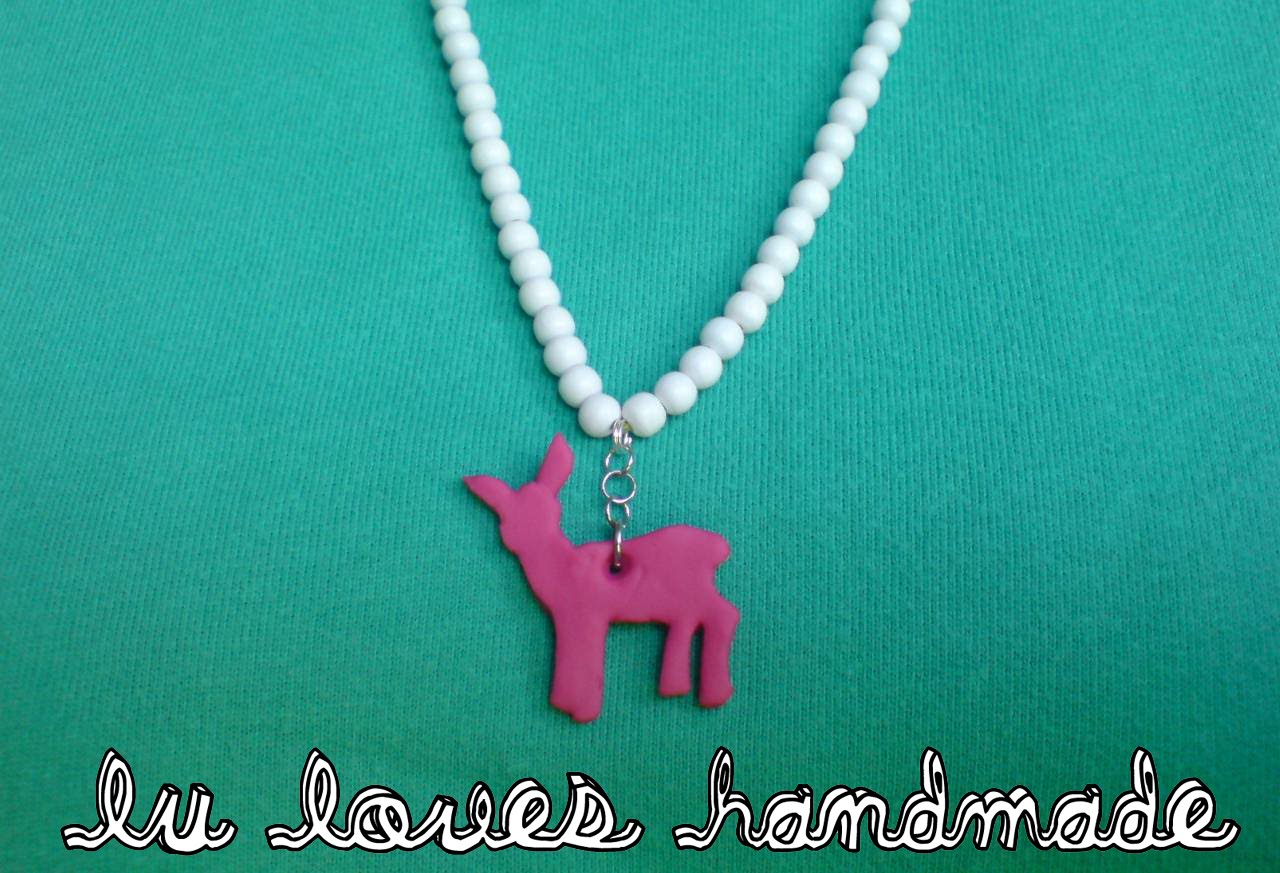 Here’s a necklace I made yesterday. Therefore, I first made the necklace with these wooden beads and then I made this cute roe deer out of modelling material (Fimo). Love the color contrast, how about you? :) Wish you a great Sunday!