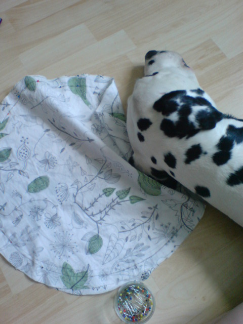 Isn’t he cute? He never wants to be alone and he is always sooo curious. While I was pinning up the fabric, he used my leg as a headrest. :D