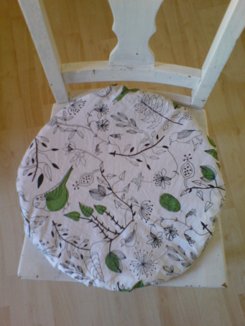 Here’s a project I have been wanting to do for so long and I finally pulled myself together to start sewing these cushion covers. :) My mother has given us two cushions for the chairs in our kitchen some months ago, but their surface is very scratchy. I recently bough this cute bird fabric during a shopping trip at Ikea and today I made these two cushions covers. :)