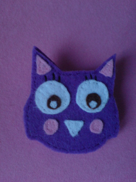 Before you finally sew the two layers of felt together, attach a tiny piece of felt to the ears, and then add a white piece of felt to the pupil.