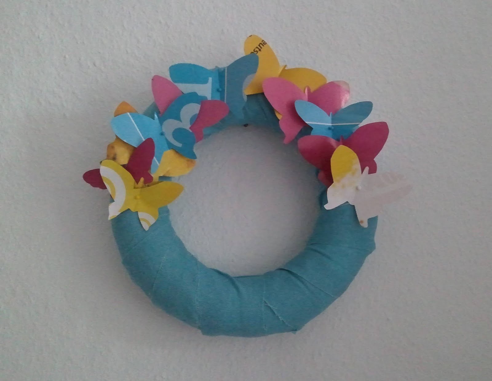 Hi! :) Did you enjoy your weekend? Inspired by Claire’s butterfly wreath she made some time ago, I made one myself and I really love the colors. :) I didn’t use butterflies from the handicraft store, instead, I cut them out of a newspaper and used bright, summery colors. :)
