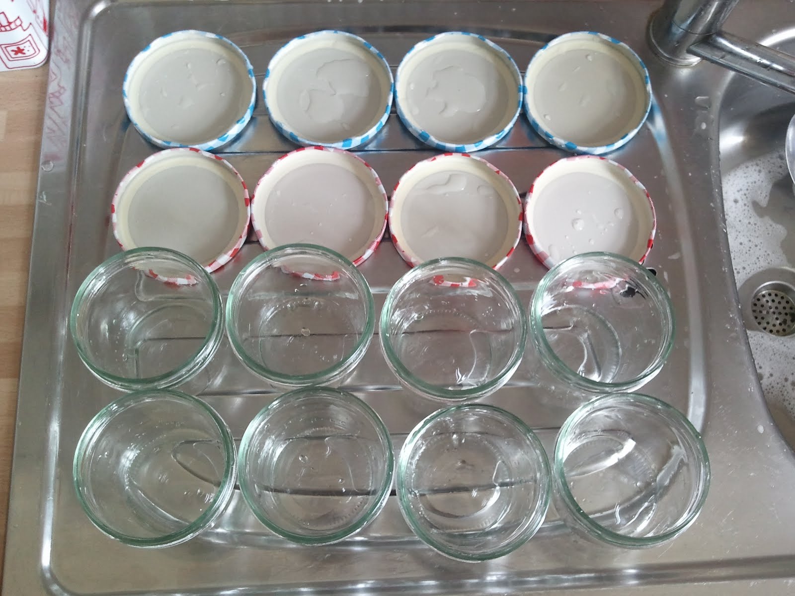 What is very important, before filling them with the hot jam (you have to do this directly after boiling), you have to clean the jam jars with hot water so that they become sterile.