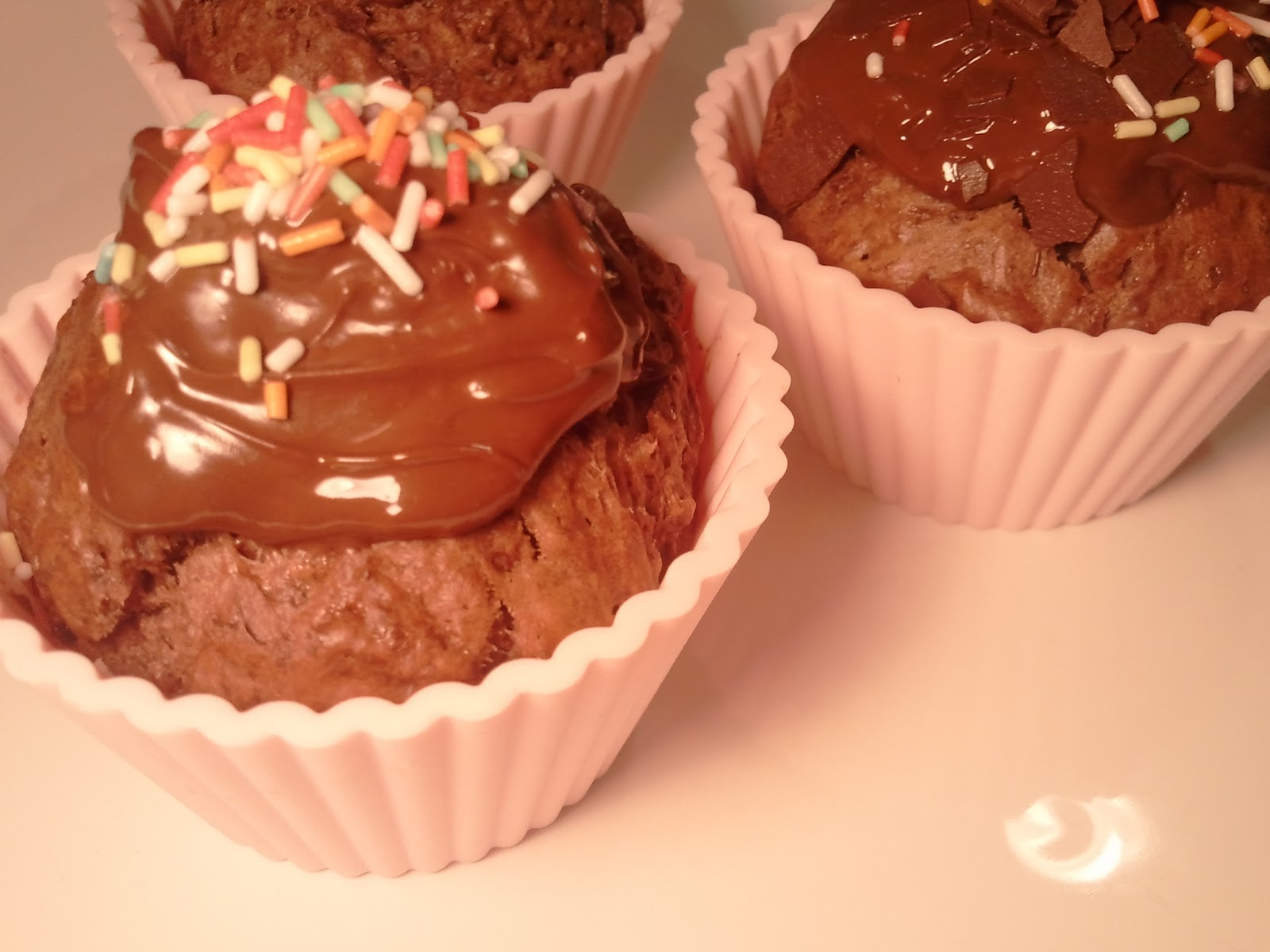 Finally, you can carefully melt the plain chocolate in a pot, pour a bit of it over the chocolate muffins and then decorate them with some crumbles. I love mine, they are so colorful and tasty. :)