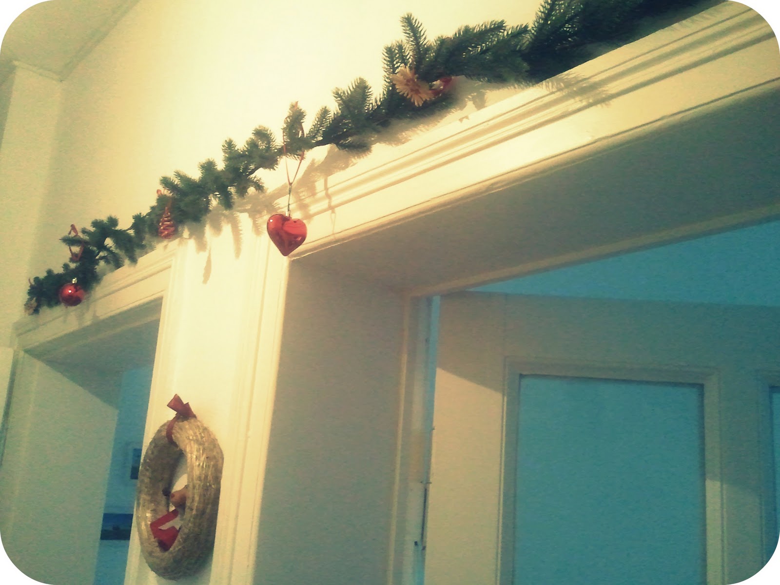 I bought those awesome plastic fir branches at IKEA, they are hanging in our hallway. <3