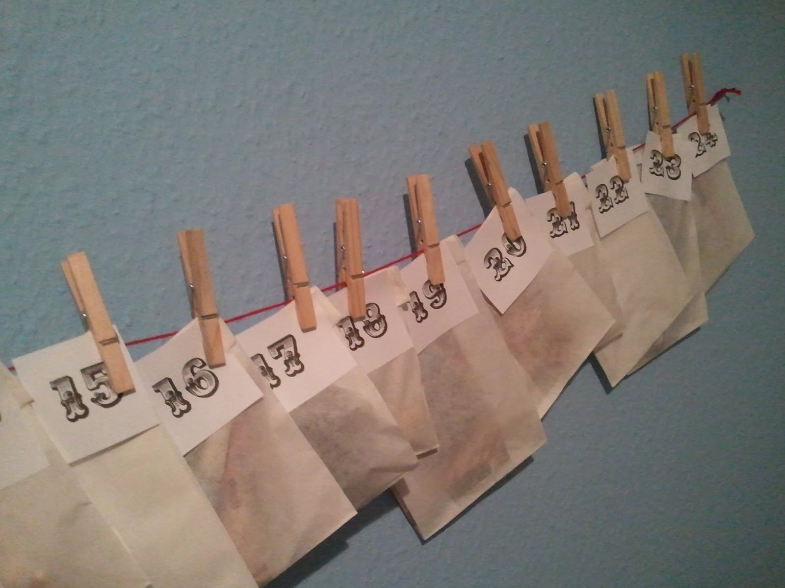 As you can see, the calendar perfectly matches the blue walls of my mother’s dining room. :) I filled it with many surprises, sweets, Christmas decoration and some useful things, but I don’t want to tell too much, because my mother reads my blog. :)