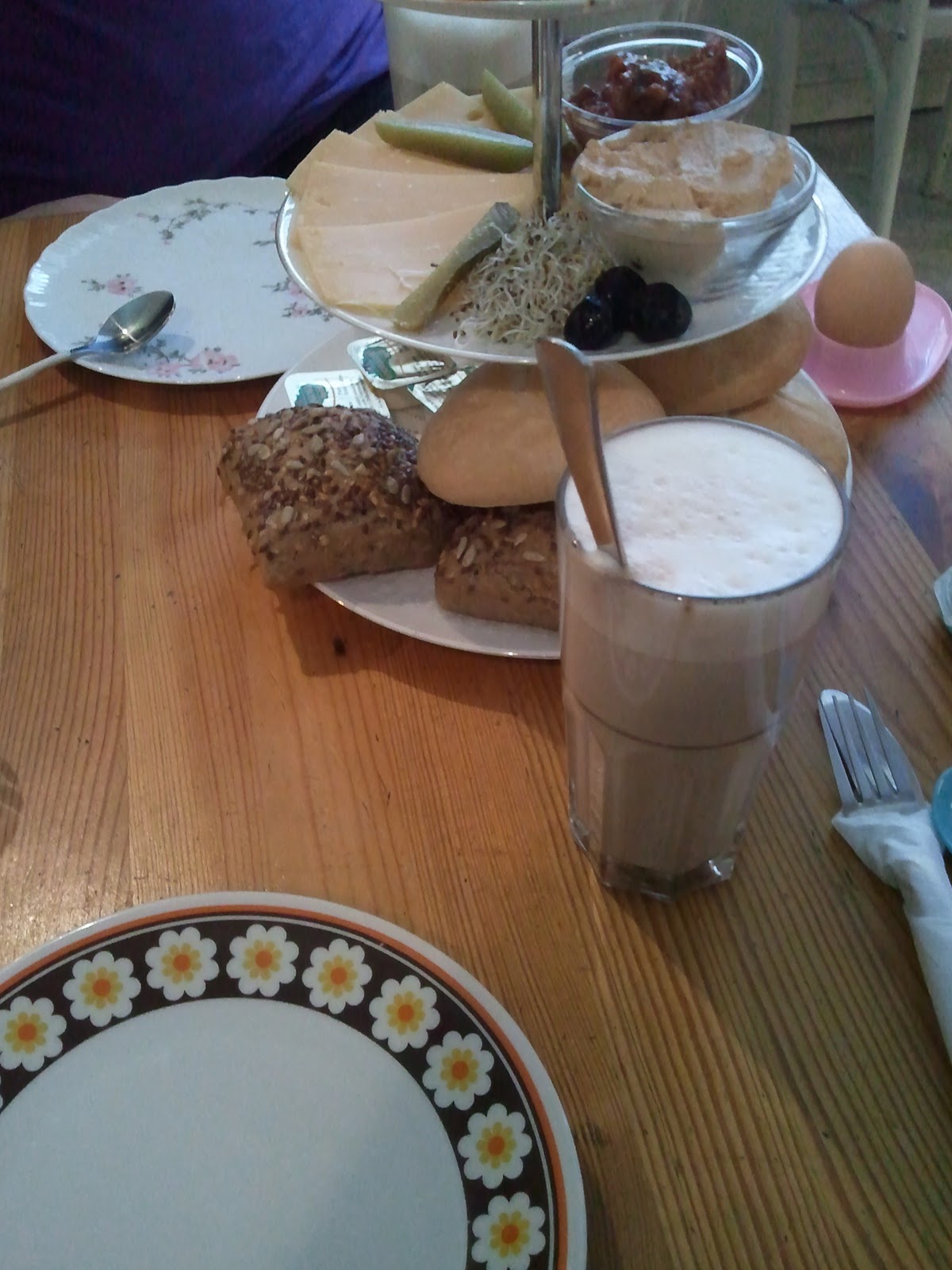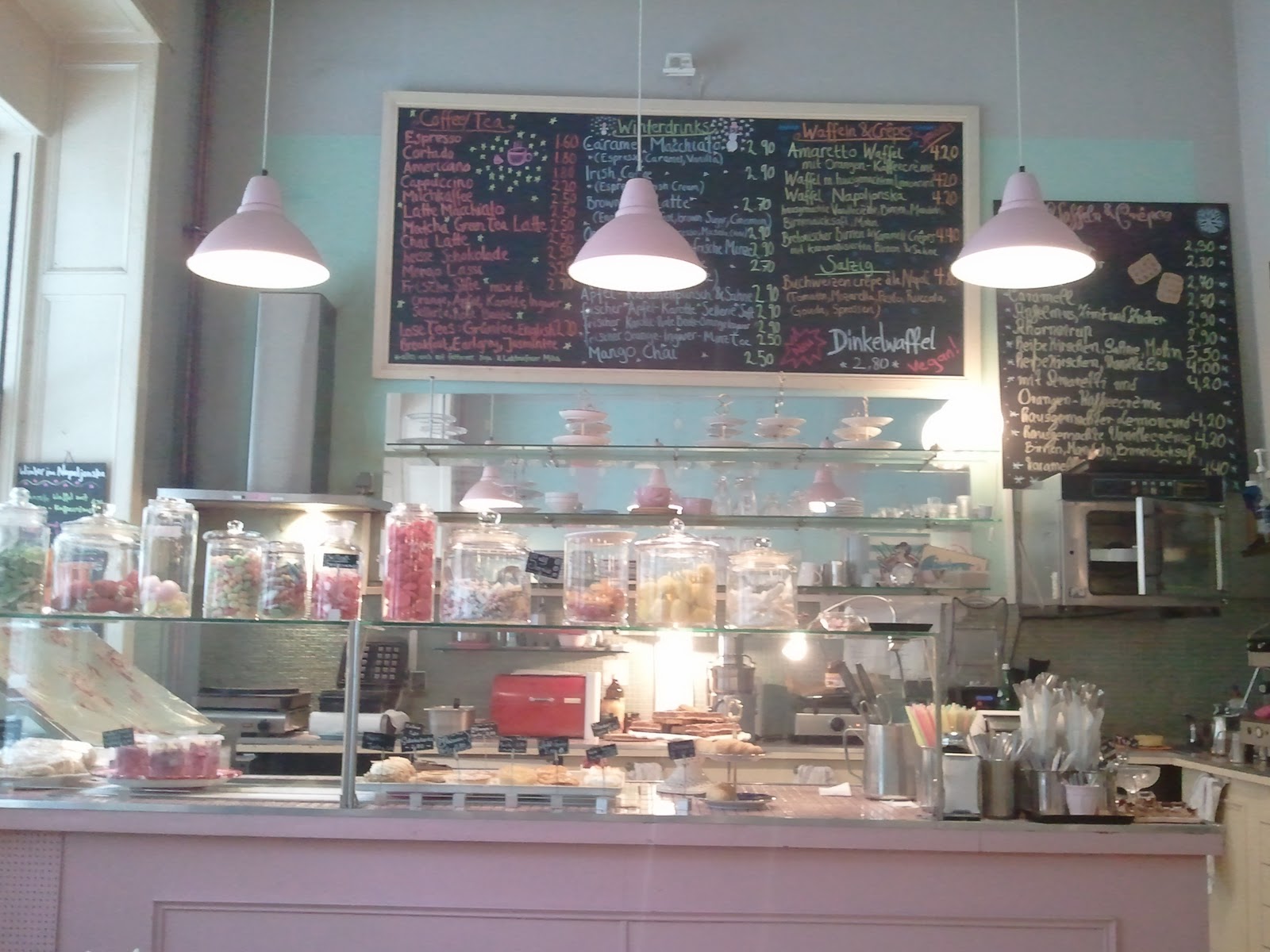 On Tuesday I had a breakfast date with Trisha (unfortunately, I didn’t take a photo of her, but so you have another good reason to visit her blog! :)), one of my online pals I got to know through Indie Biz nearly one yar ago. I showed her my absolutely favourite cafe in Berlin, Napoljonska, it’s located in the Kastanienallee (you should go there if you ever visit Berlin) and there you can eat lots of delicious and fresh cakes, pancakes, vegetarian breakfast, ice-cream and sweets. I love it so much because the food is so fresh and I love, love, love the pastel colors in the cafe. <3