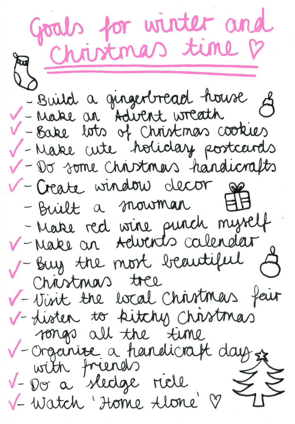 Hey! :) The new year has begun and for me this also means the end of Christmas time. Some weeks ago, I made a list of goals for Christmas time and here’s what I’ve done. :) As you can see, I almost reached every goal, but I didn’t build a snowman (haha, it has always been too cold to spend more time outside than neccessary), I didn’t build a gingerbread house (but my excuse is that I made tons of Christmas cookies) and I didn’t make red wine punch. :)