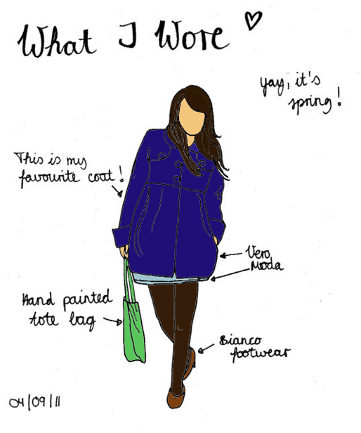 Maybe some of you already know Gemma Correll and her oh so beautiful illustrations and if you don’t, take a look at her page. :) She is the one who has also created a flickr group in which one can post daily outfits, but only drawings of them. The group is soooo worth being looked at, because there are sooo many talented people posting drawings of what they wore and what is most fascinating are all the different styles in which they create the drawings. :)