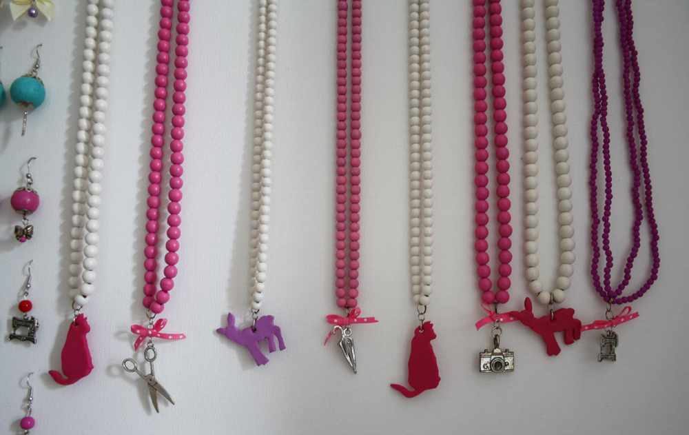 Those are all my handmade necklaces. The cute animals are handmade, too.