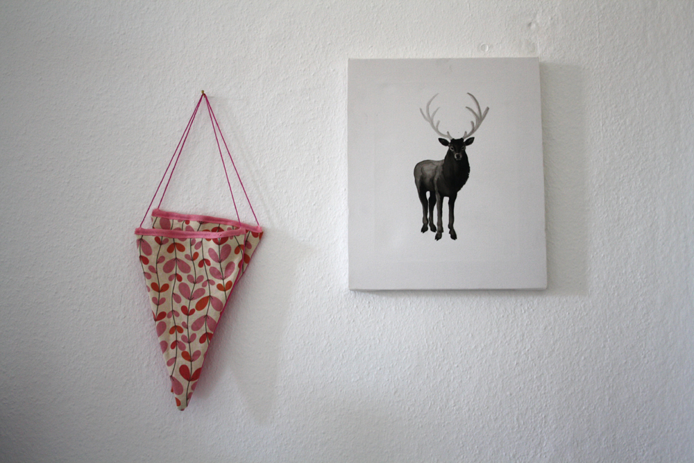 This is one of my favourite places in my room, the corner with all my handmade stuff and the red chair. :) On the right side of the photo, you can see my tiny, but constantly growing fabric collection. :)