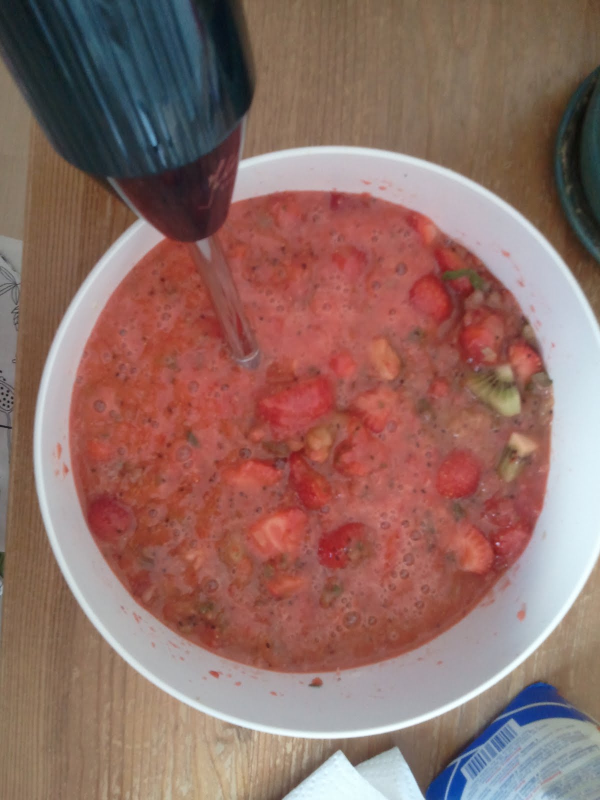 Hi! :) I was highly inspired by the delicious summer jam Ellen has sent me, so I decided to find out how to make jam myself and my mother told me how to do so. :) Today, Flo and I went to the market, bought some fresh red currants and a pot of lemon balm (you can’t imagine how fresh and summery this smells). Because I wanted to make LOTS of jam, I also went to the supermarket and bought strawberries and kiwis, some of my favourite fruits. :)