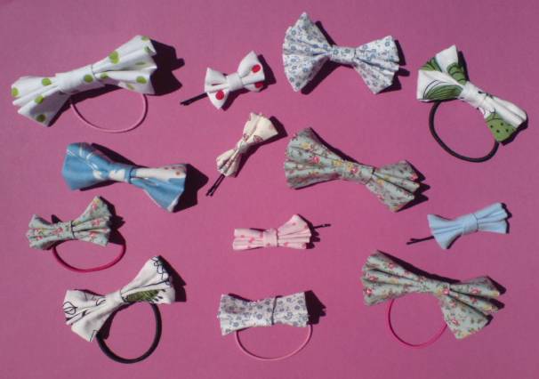 Wow, it was so hot outside today that I was nearly melting. :) I went to Berlin to bring some new items to the shop for selling them there. I brought the first ones there about 2 months ago and so far I have sold 11 items, mostly brooches, hair bows and two pairs of earrings. To my surprise, none of my necklaces were sold, but somebody has stolen one of them which means that there is at least one person who likes them. :) With selling these 11 items, the shop and I have earned about 68€ and because I get  half of the income, I’ve just earned the first 34€ by selling my own handmade stuff. :) So when I went there today, I also picked up the money and was sooo proud of myself. Don’t get me wrong, the money itself is not that important for me, but it is great to see that somebody conciders my items being worth spending money on them and this is great! :) So here you can see the new hair bows and the two purses I made. :)