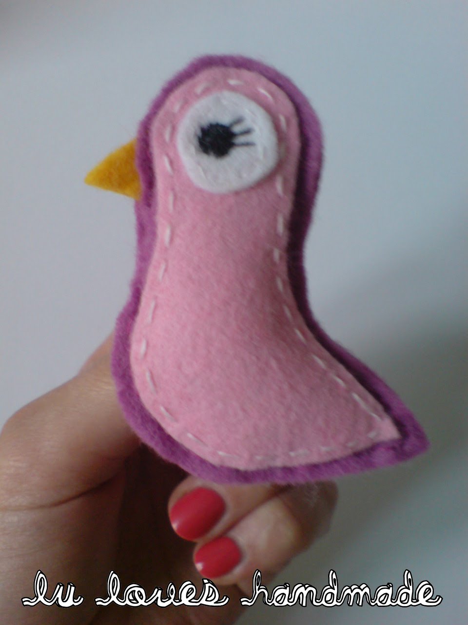 Here’s what I made some days ago, a new brooch for spring. :) The little birdy is made of thin felt and filled with wadding. :)