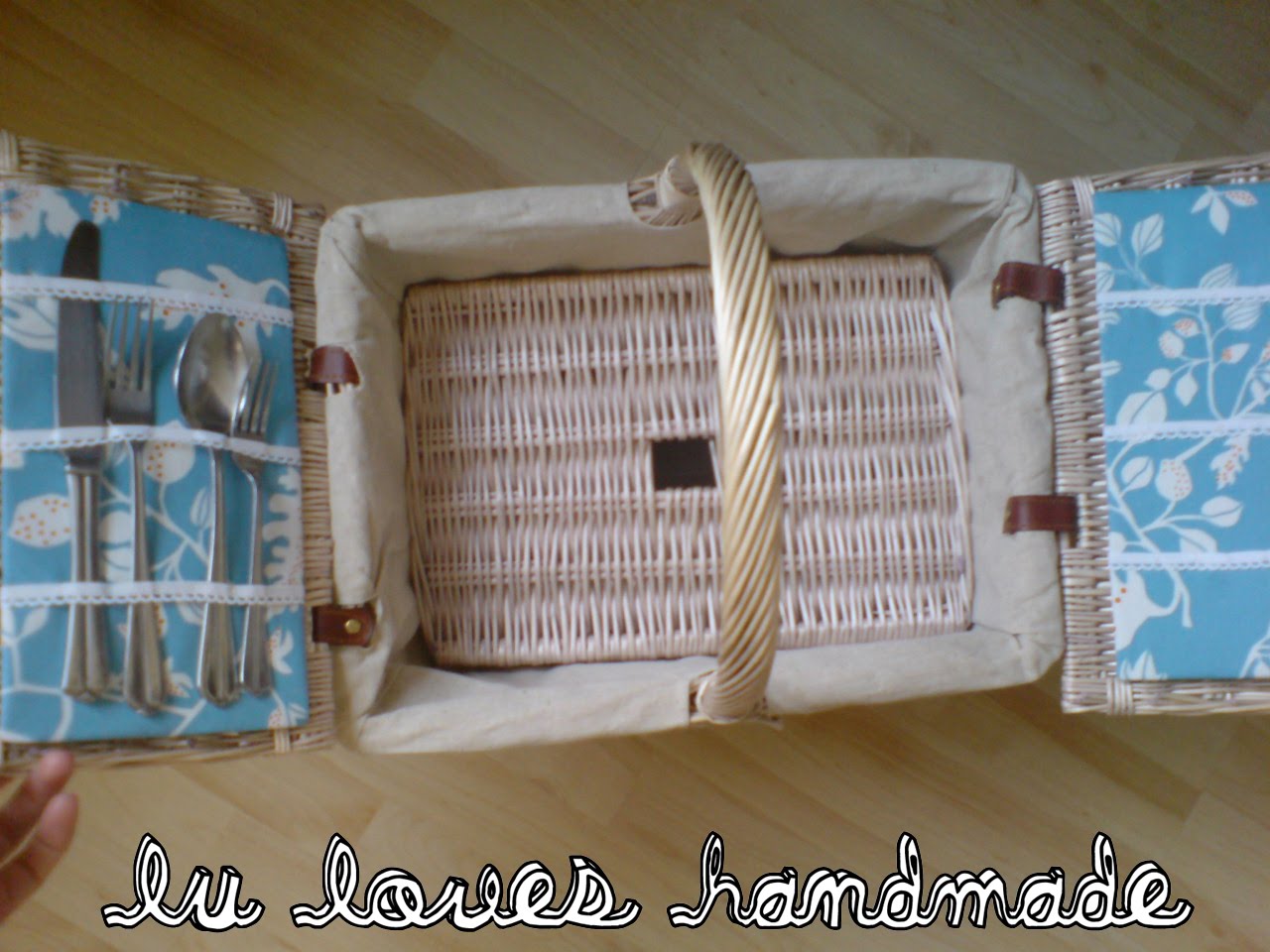 during the last weeks I have been searching for the perfect basket to modify it for becoming a picnic basket, because I wanted such a thing soooo bad! Last Sunday while my boyfriend and I were visiting a local city festival, I finally found one. Just on the same day I started adding fabric for a cutlery holder, it took a lot of time, but was definitely worth the effort. Yesterday we used the basket for the first time while we were having our first picnic this year and enjoyed the beautiful weather! :)